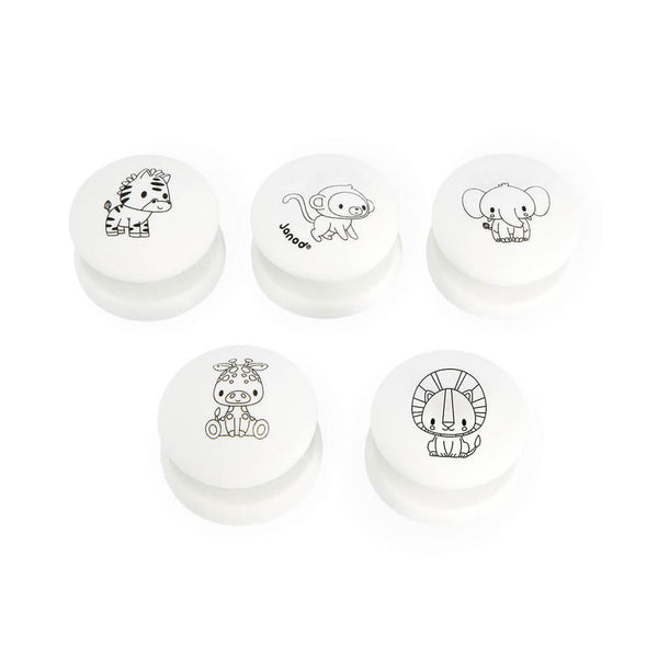 I piccoli artisti esploreranno la savana insieme a questi piccoli animali! Questi grandi timbri in gommapiuma, dalla forma ergonomica adatta alle piccole mani, i bambini dai 18 mesi in su daranno vita alle loro prime creazioni. La scimmia dispettosa o la giraffa dal lungo collo: quale sarà l'illustrazione preferita dei bambini? Non dovranno far altro che usare le matite colorate per animare queste bellissime immagini. Questa attività è ideale per sviluppare le abilità fino-motorie e l'immaginazione fin dalla tenera età. Questo set di attività manuali per i più piccoli contiene 5 timbri e 1 cuscinetto inchiostrato nero. Questo prodotto è realizzato con materiali certificati FSC® e materiali controllati.