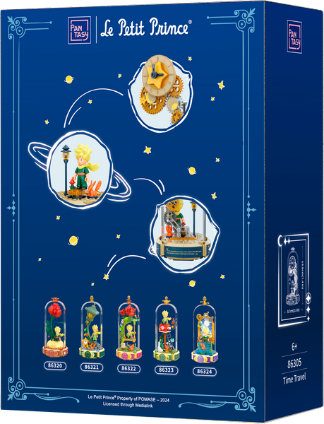 Il set di costruzione della serie del Piccolo Principe "Time Travel " di 22 cm è un prodotto ufficiale con licenza . Adatto a bambini dai 6 anni in su , misura 10 x 10 x 22 cm . Lasciati trasportare nel magico mondo del Piccolo Principe .
