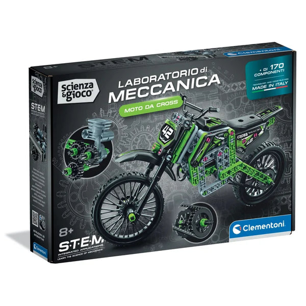 Meccanica che prende vita. Costruisci la tua motocross con ruote e ingranaggi funzionanti!