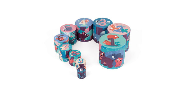 Questa piramide di cartone con 10 elementi da impilare Š ideale per aiutare il tuo bambino a imparare i numeri. Dovà ricostruire una magnifica piramide sul tema degli animali della foresta. Nella parte superiore di ogni elemento c'Š anche un numero di 1 a 10. Con questa piramide, il vostro bambino impareà a contare fino a 10 e sviluppare le sue abilit… motorie e la fantasia divertendosi!. .