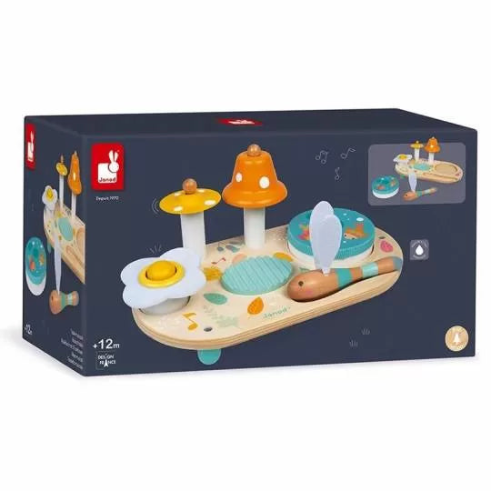 Benvenuti nella natura, per una passeggiata bucolica tra libellule e fiori di campagna! Nel programma di viaggio del bambino, la scoperta musicale con questo grazioso tavolo Pure dai colori tenui e romantici e dalle graziose illustrazioni! A partire da 1 anno, i bambini saranno in grado di imparare i diversi suoni in completa autonomia grazie a questo bellissimo gioco di apprendimento sonoro. Il tavolo musicale è composto da un piatto di funghi gialli, una campana arancione con pois bianchi, un raschietto di legno, una trombetta a forma di margherita e un tamburello rimovibile. Quest'ultimo raffigura un bellissimo stagno dove i pesci fluttuano sotto le ninfee. Per far suonare il tutto, i bambini potranno usare questa divertente bacchetta a forma di libellula con le sue morbide ali in feltro bianco! Con questo giocattolo di legno della prima infanzia, il bambino potrà familiarizzarsi con la musica al suo ritmo!