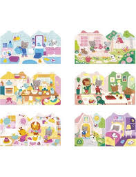 Per far felici i fan degli adesivi, aprite questo simpatico quaderno a forma di gatto e scoprite la sua casa: il quaderno ha 12 pagine di decorazioni illustrate, così potrete ricoprire ogni stanza con le 8 pagine di adesivi spillate nel quaderno! Le dimensioni degli adesivi sono state studiate appositamente per adattarsi alle mani dei più piccoli: hanno tutti una forma semplice, senza bordi, per facilitarne la presa.