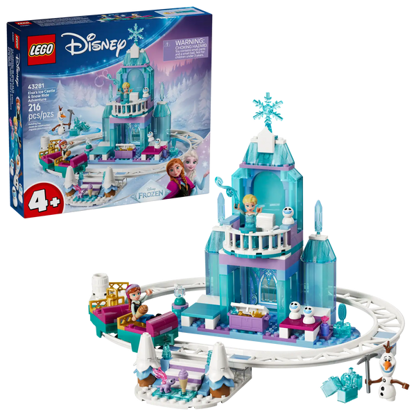 Regala ai bambini dai 4 anni in su questo giocattolo costruibile Castello di ghiaccio di Elsa e avventura sulla neve LEGO® ǀ Disney Frozen (43281). Avvia il gioco con 7 personaggi LEGO ǀ Disney Frozen: Elsa, Anna, Olaf, Bruni e 3 Snowgie, più un castello a 2 piani con sala del trono, balcone, 2 letti e una cucina. C’è un binario separato con una scala e una slitta con posto per uno dei personaggi. Soddisfa la passione di un bambino per Frozen Disney con un set da costruzione a tema castello, un regalo di compleanno divertente per bambine e bambini, che si integra perfettamente con altri set LEGO ǀ Disney (venduti separatamente). I 5 elementi Starter Brick aiutano a dare ai bambini una partenza solida e ogni bustina di mattoncini ha 1 modello costruibile e un personaggio, quindi il gioco inizia velocemente. Insieme a semplici istruzioni illustrate per bambini che stanno imparando a leggere, l’app LEGO Builder offre un’avventura di costruzione intuitiva e divertente, con istruzioni 3D che permettono di ingrandire, ruotare e seguire facilmente ogni passaggio, oltre a salvare e monitorare i progressi del proprio progetto. Il set contiene 216 pezzi , include un castello di ghiaccio a 2 livelli con un binario per slitta circolare; il castello è alto 21 cm, largo 28 cm e profondo 27 cm .