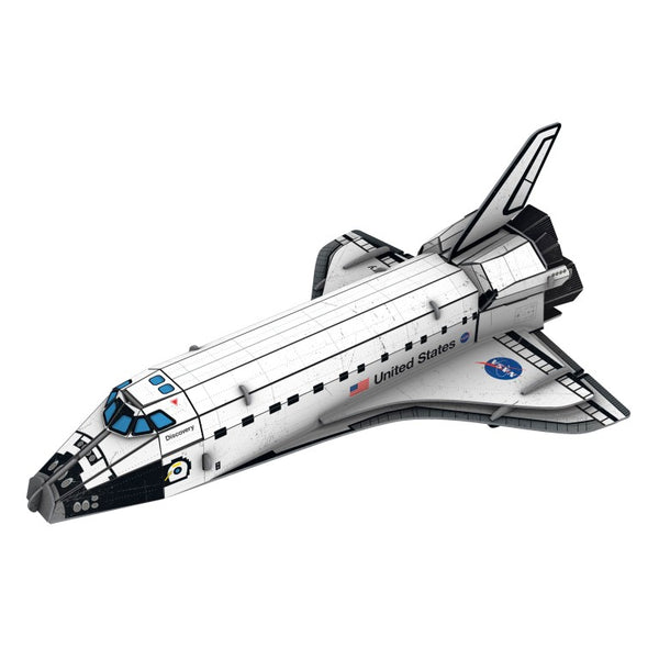 La confezione contiene un libro di 32 pagine sulla celebre navetta spaziale della NASA, e tutti i pezzi necessari per costruire un dettagliato modellino 3D in cartonato, senza il bisogno di forbici e colla.
