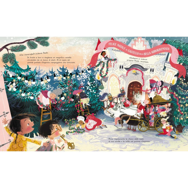 Per Natale, Amelia e Paolo ricevono in regalo una misteriosa chiave che li conduce a un castello… e non a un castello qualunque, bensì a quello della Bella addormentata! In un tripudio di dolci, abiti principeschi e personaggi bizzarri, i due bambini si divertono da matti. Ma gli abitanti del castello sono tutti addormentati… mancherebbe proprio qualcuno con cui condividere tanta allegria!
