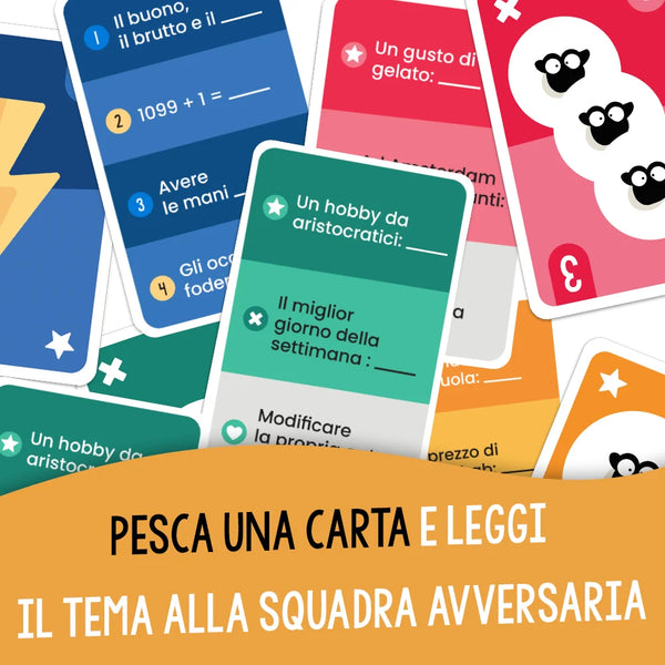 In questo gioco folle, i membri di ogni squadra devono rispondere all’unisono. Se dite tutti la stessa cosa, avete vinto! Più risposte di fila riuscite a dare, più punti guadagnate. Ma se rischiate troppo... potreste perdere tutto!