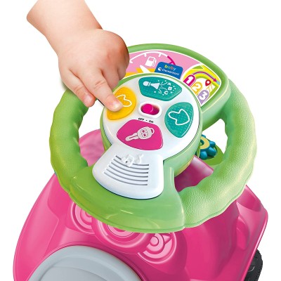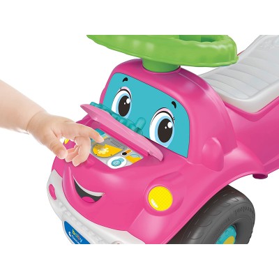 Un'auto dal design unico con 3 diverse funzioni: cavalcabile, primi passi e centro attività. Questo cavalcabile è studiato fin nei minimi dettagli, con ruote sterzanti, sistemi antiribaltamento e paraurti in gomma morbida per risultare ergonomico, sicuro e confortevole. Il volante elettronico con tanti suoni e canzoni, cattura l'attenzione del bambino e ne stimola la curiosità e l'udito. Premendo la chiave si attiva la modalità con effetti sonori realistici, per stimolare l’immaginazione e il gioco imitativo. Gli ingranaggi da girare per "riparare il motore" e le formine da inserire e recuperare dal bagagliaio, supportano lo sviluppo psicomotorio del bambino. Un gioco dall’approccio ecosostenibile realizzato per oltre l’80% in plastica riciclata di alta qualità, e confezionato con materiali 100% riciclati.