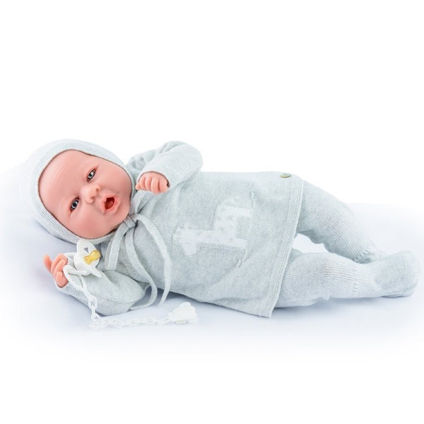 Corpo morbido e arti in vinile . Include certificato di nascita reborn, ciuccio e abitino in cotone.