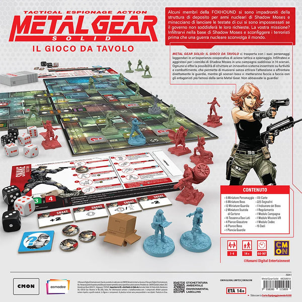 Metal Gear Solid: Il Gioco da Tavolo è un gioco di miniature, cooperativo, tattico e di spionaggio, ispirato al celebre videogioco che si struttura in una campagna suddivisa in 14 scenari.